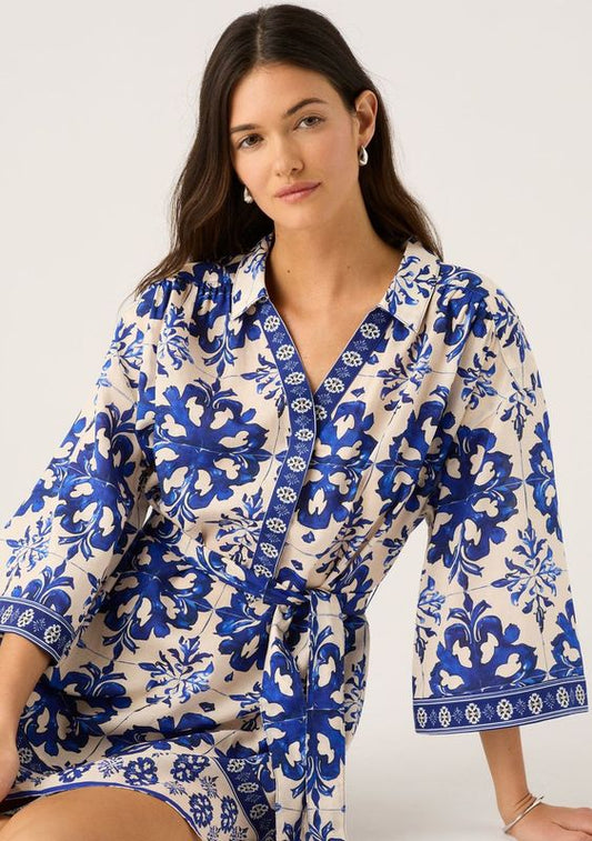 Once Was - Emery Cotton Silk Kaftan Tie Top - Azalea Fields