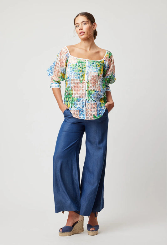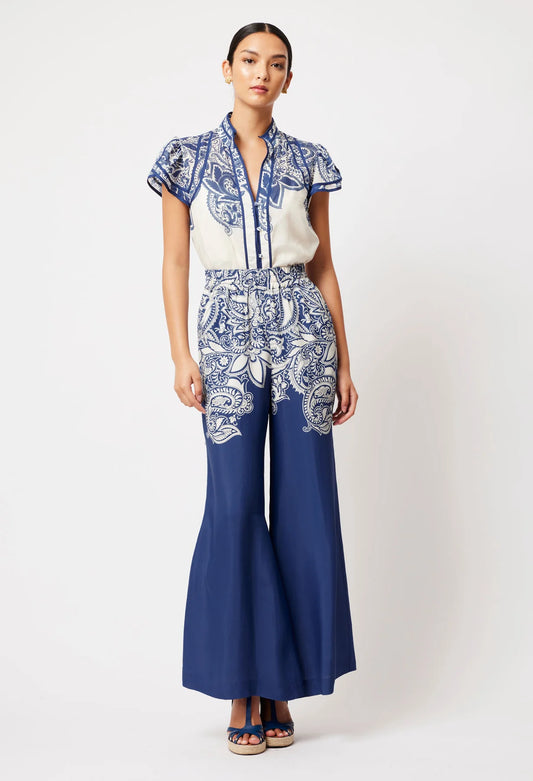Once Was - Panama Cotton Silk Top - Bone Paisley