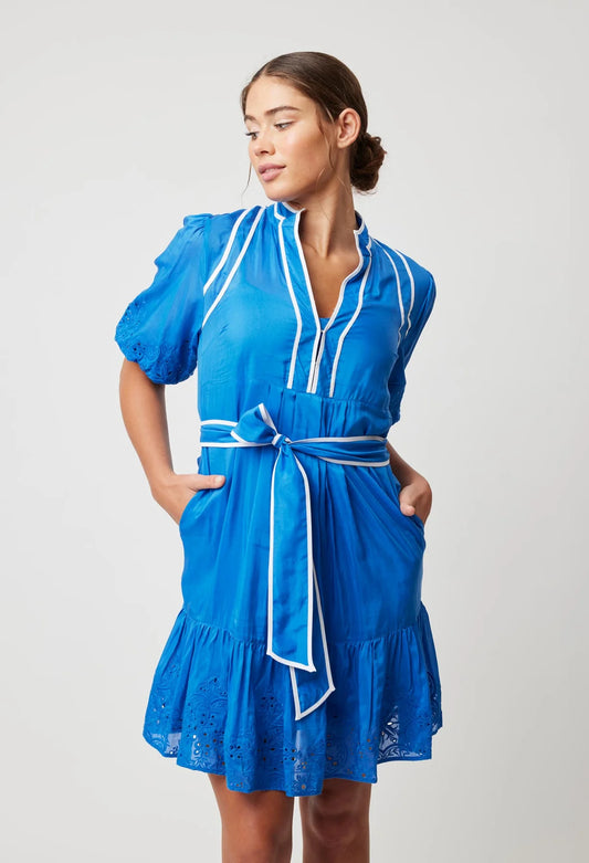 Once Was - Lucia Embroidered Cotton Silk Dress - Azure