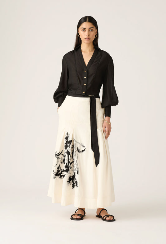 Mos the Label - Lis Embroidery Midi Skirt - Ivory