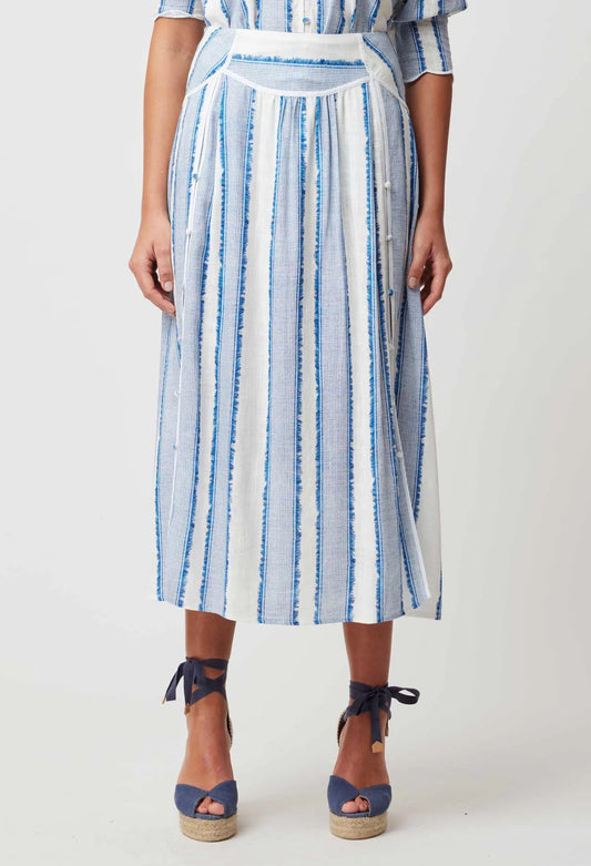 Once Was - Harmony Linen Viscose Skirt - Sorrento Stripe