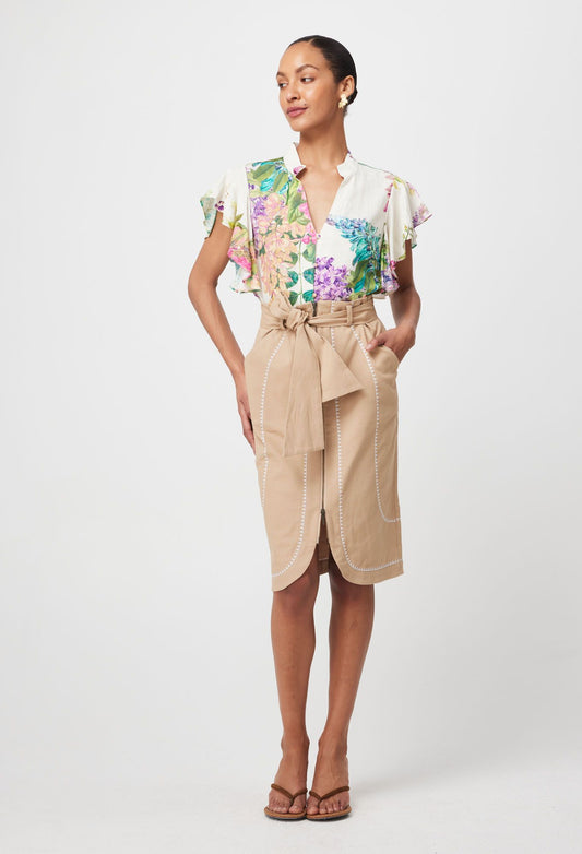 Once Was - Delray Embroidered Stretch Cotton Skirt - Sand