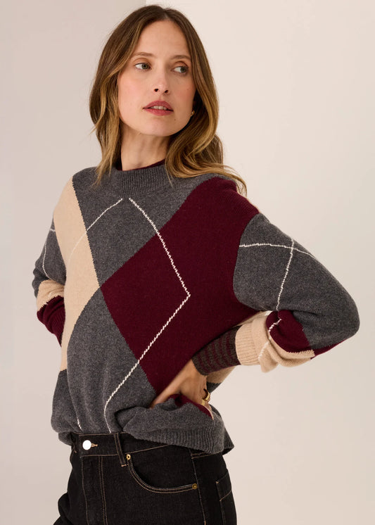 Pol Clothing - Loren Argyle Knit - Char/Merlot/Pebble