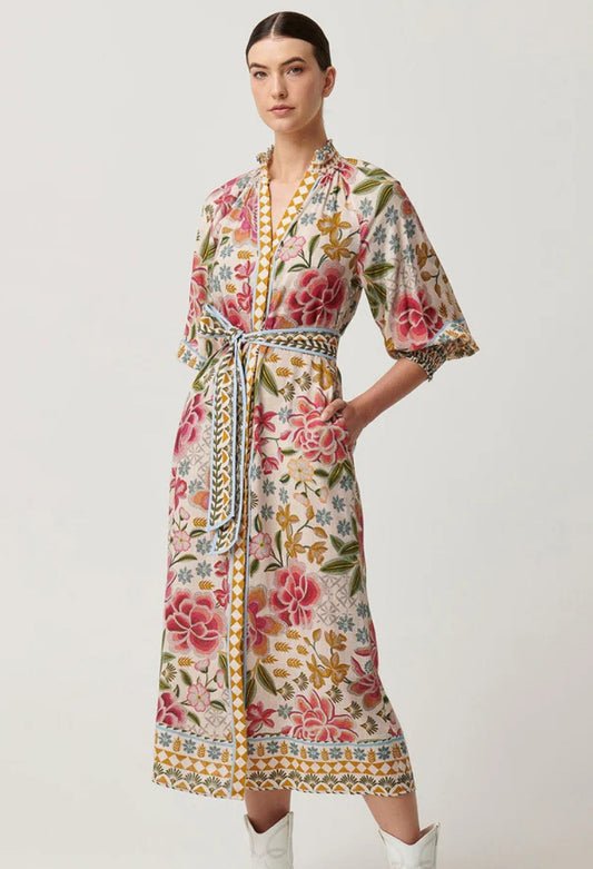 Once Was - Sienna Trim Cotton Silk Midi Dress - Dahlia Fields