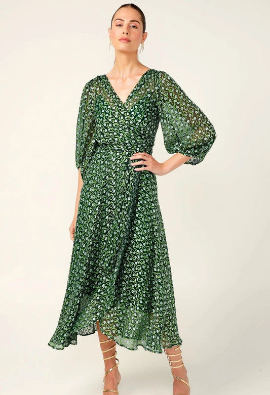 Sacha Drake - Wonderland Midi Wrap Dress - Emerald Poppy