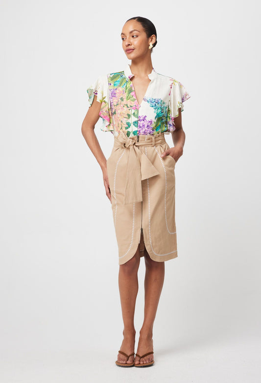 Once Was - Delray Embroidered Stretch Cotton Skirt - Sand