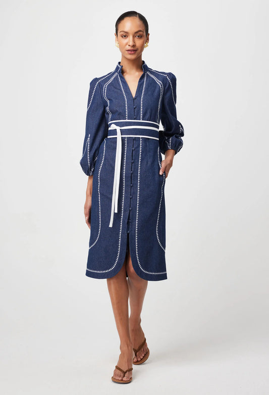 Once Was - Swanson Embroidered Cotton Dress - Dark Denim