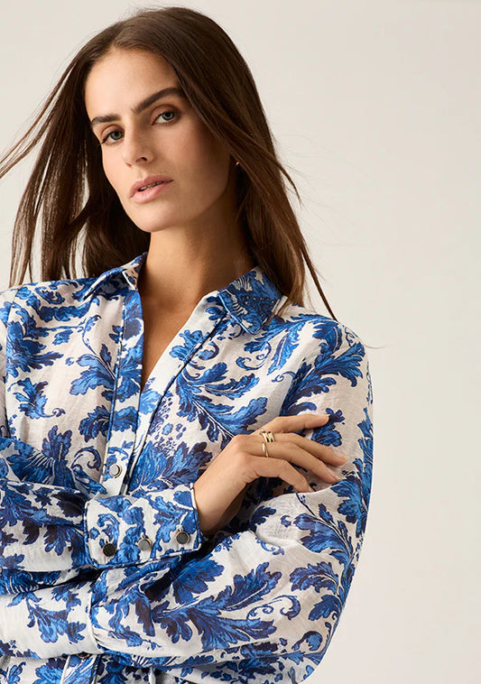 Once Was - Phoenix Viscose. Chiffon Blouse - Lapis Spot