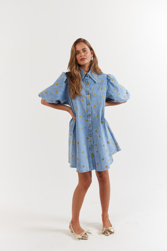 La Bohème Girls - Peyton Mini Dress - Denim Hearts