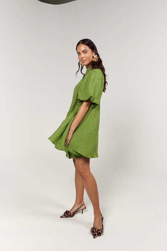 La Bohème Girls - Peyton Mini Dress - Green Gingham