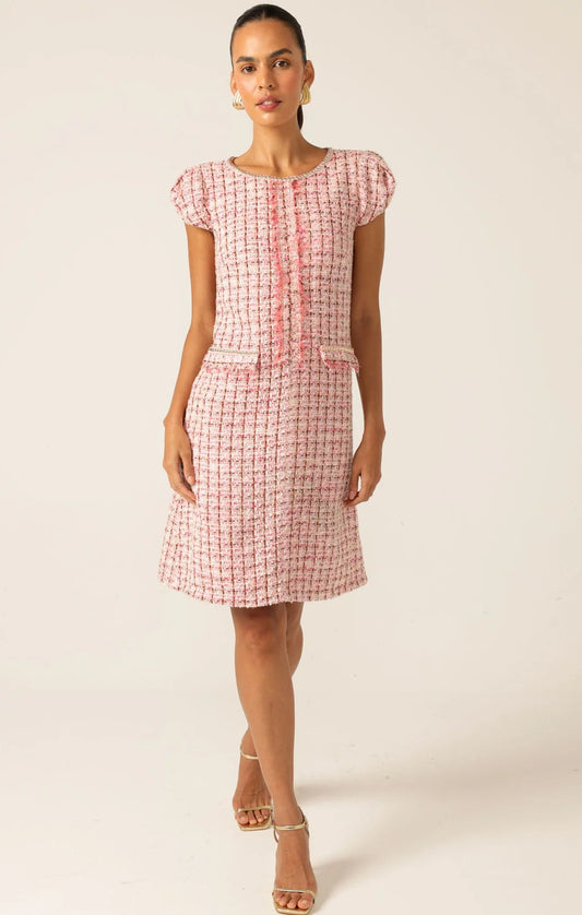 Sacha Drake - Celestine Shift Dress - Pink White Tweed