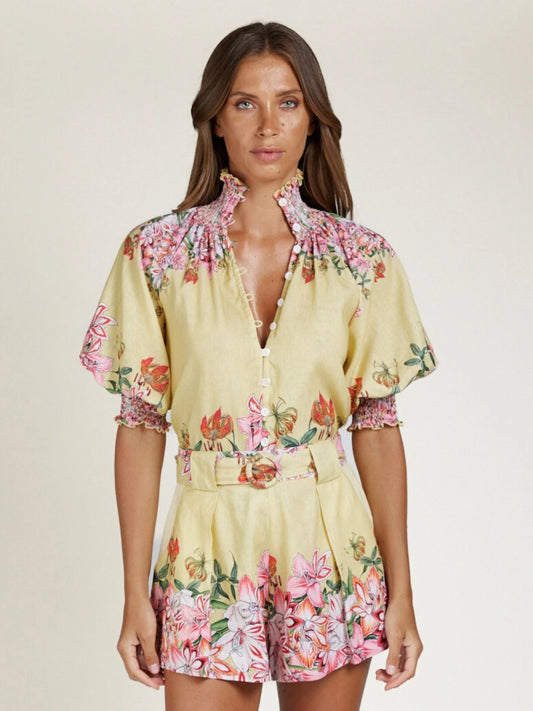 State 0f Embrace - Tropic Blooms Top - Lemon