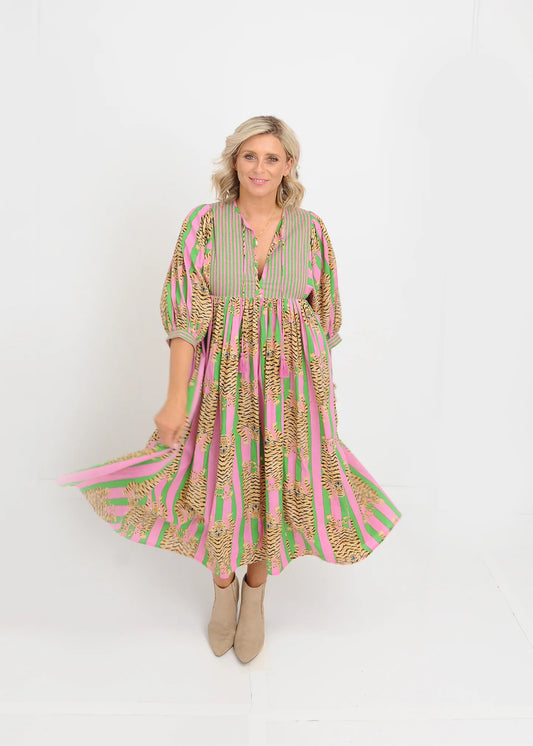 Sold outTiger Print Dress - Pink Green