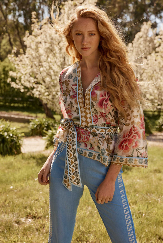 Once Was - Emery Cotton Silk Kaftan Tie Top - Azalea Fields