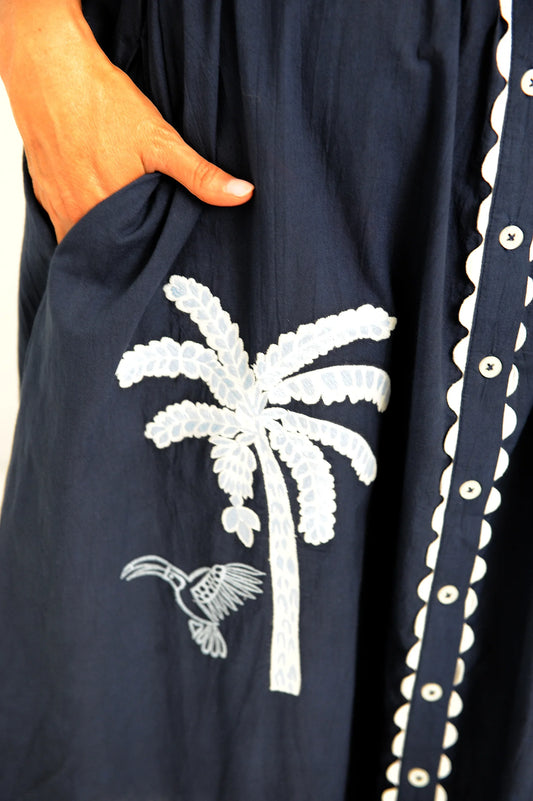 Palm Dress - Navy White Palm