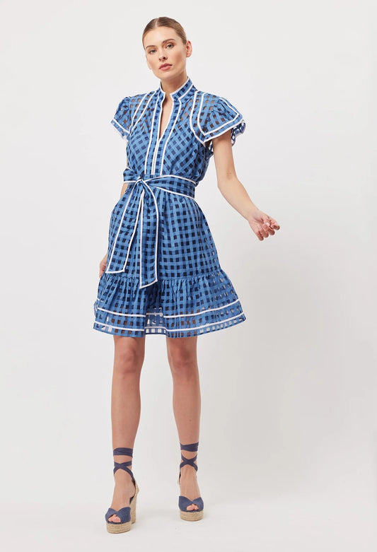Once Was - Elena Cotton Silk Check Dress - Laguna
