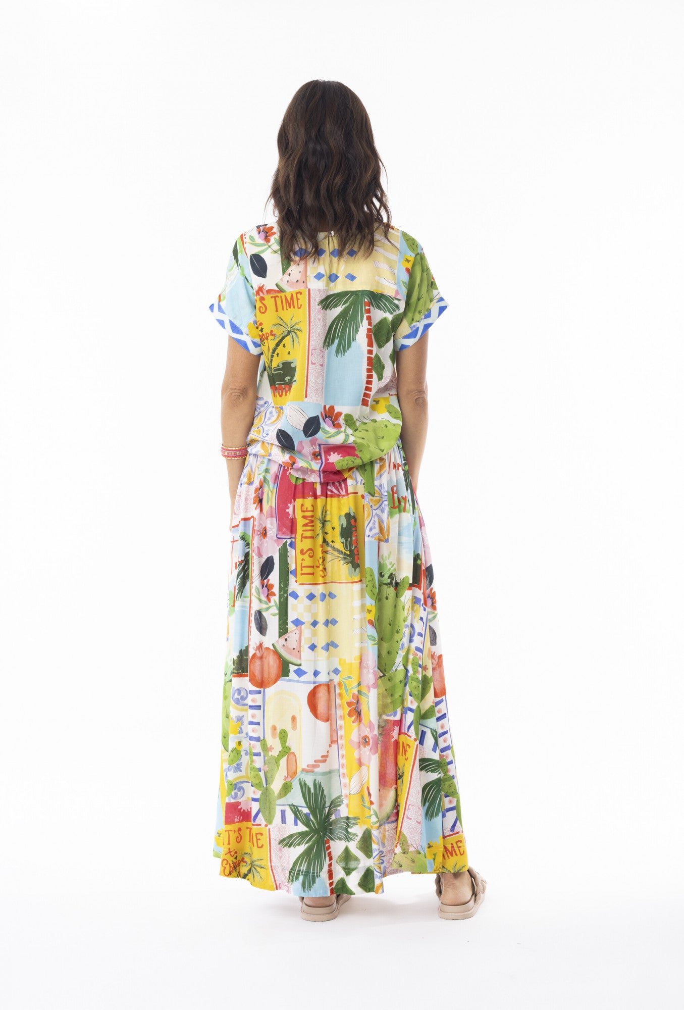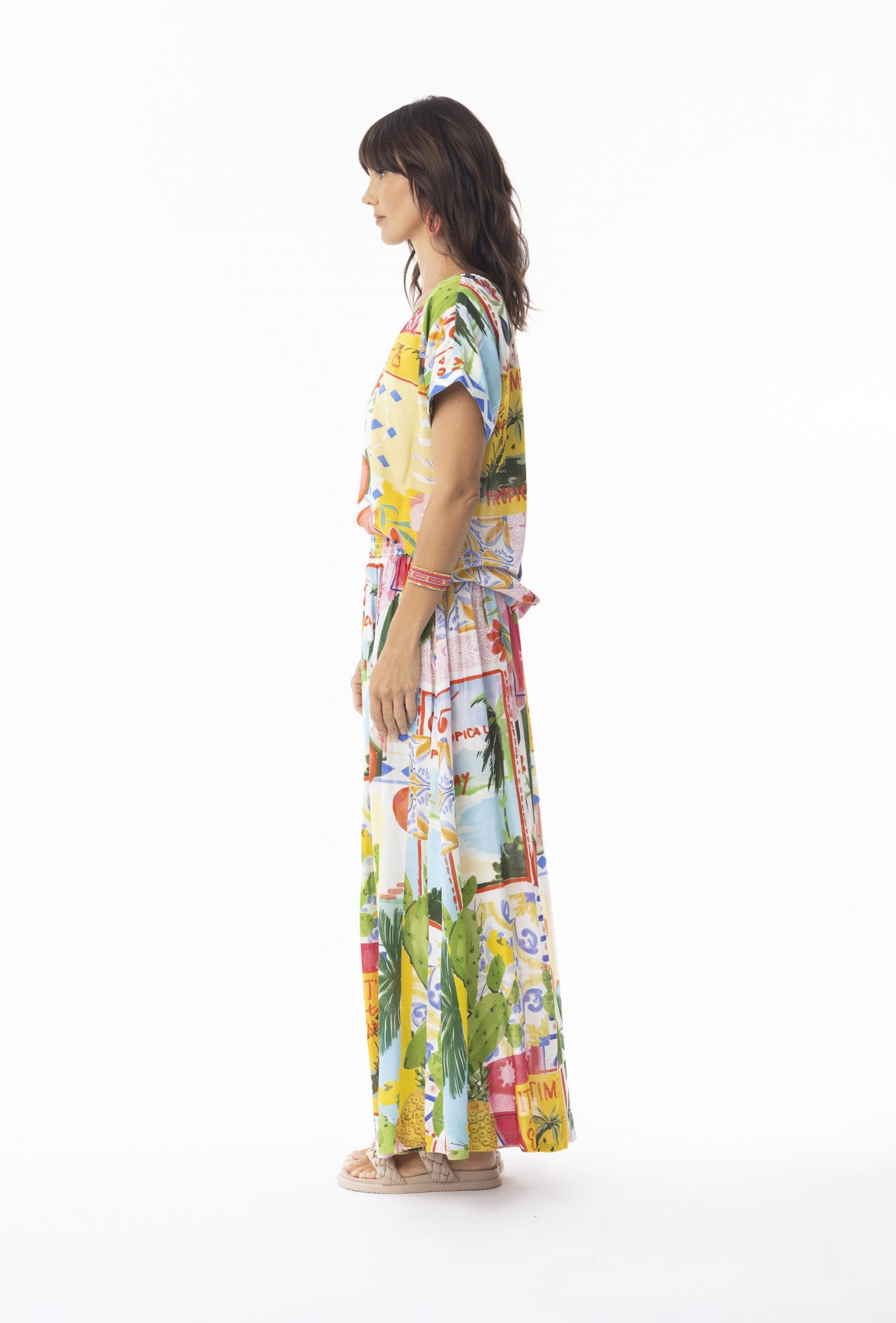 Step into the spirit of wanderlust with the flowy Erica Skirt. Designed in a pretty mexican seaside theme with a breezy maxi length with a flattering A-line shape, its shirred waistband ensures all-day ease and a flexible fit. The playful print adds a joyful flair, making it a perfect go-to for sun-drenched outings or laid-back moments with character.