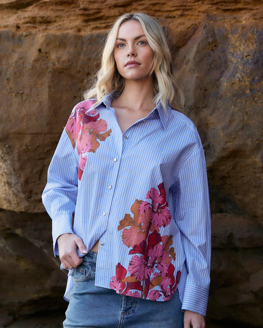 The Sweet Jane Shirt is a chic and versatile long sleeve top that elevates everyday dressing. Featuring floral print detail, a curved hem, and button front opening, it’s finished with buttoned cuffs and a relaxed fit. A refined choice for effortless polish.