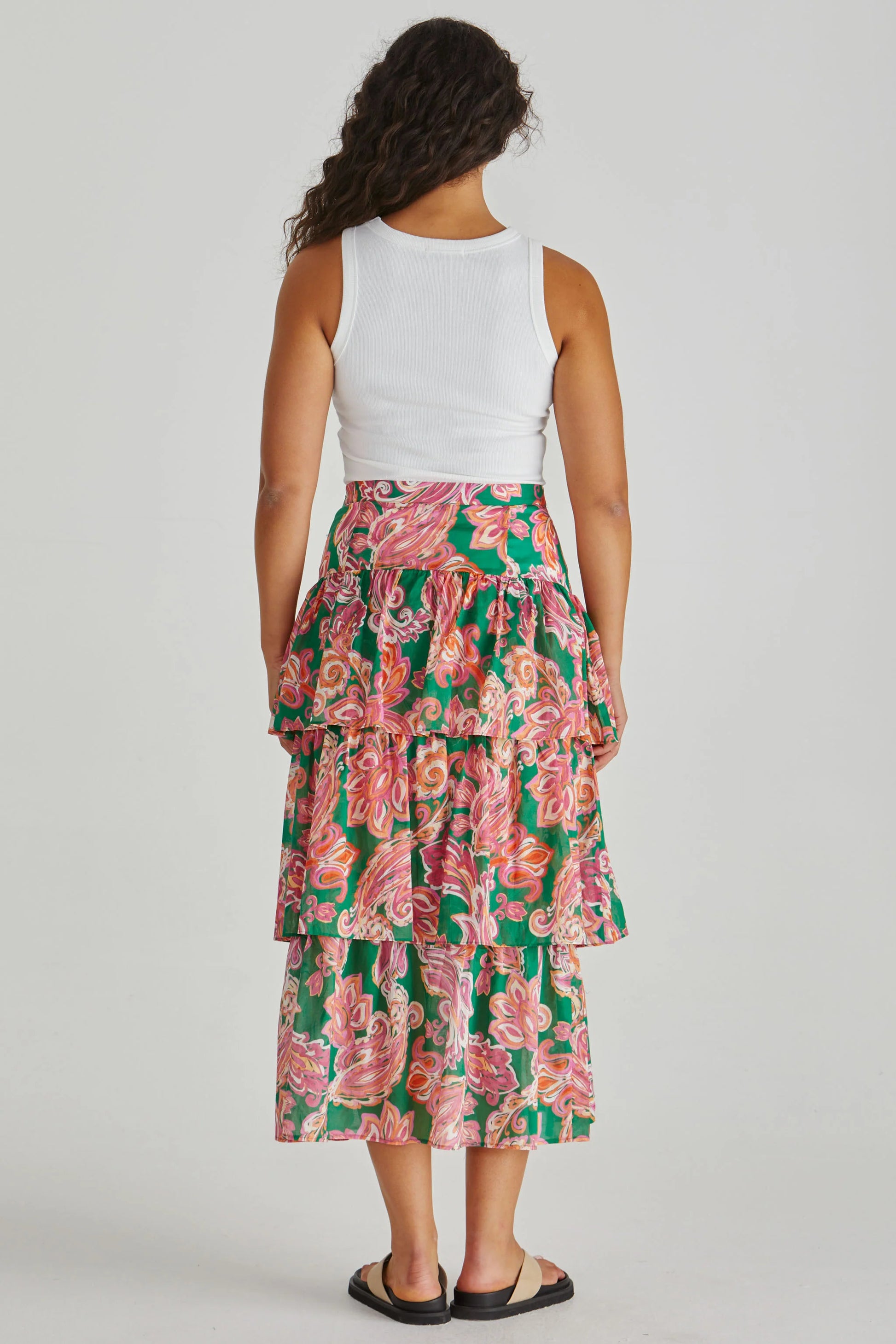 Sass Clothing - Malia Frill Layer Skirt - Pink Green Paisley